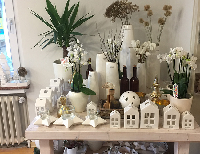 Benötigen Sie ein schönes Geschenk? Wir haben tolle Geschenkideen wie qualitative Keramik von Tiziano und Ecri, sowie Glas von Dutz und viele andere saisonale Dekorationen in unserem großen Sortiment. Besuchen Sie uns einfach in unserem Blumenladen und lassen Sie sich von den vielfältigen Ideen inspirieren.